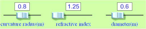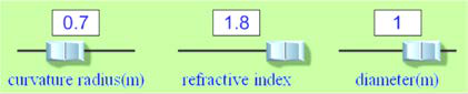 e)What was the focal distance (f) when the radius of curvature was .70 and index of refraction was 1.8?