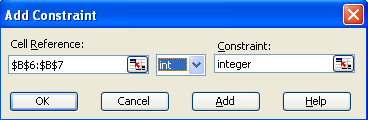 Note, that you need to ensure you get whole numbers. You can’t have half an advert after all. To do this you need to add one more constraint to the Solver by telling it to constrain the number of television, radio and newspaper ads to Int (for integer).