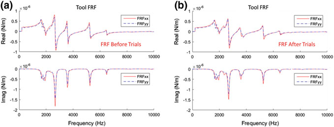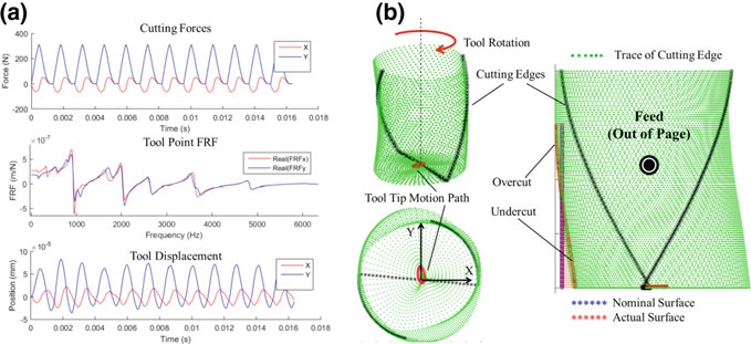 The resulting stability roadmaps for each simulation are shown in Fig. 16.11b. It is clear from the stability roadmap results that the two operations, while removing the same amount of material, differ greatly in terms of chatter risk. From the FRF data, the part is significantly more flexible in the Z-directions, and this flexibility increases likelihood of chatter for side milling, where radial forces act primarily in