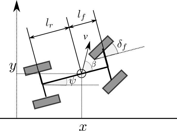The motion of the centre of mass (CoM) position (x, y) is described by the following differential equations (you might like to verify this, but it is not part of the assignment). Note the coupling to longitudinal dynamics through v(t).